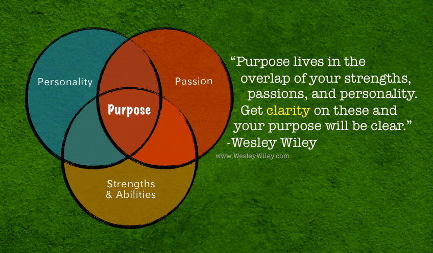Your purpose is found in the overlap of your strengths, passions, and personality. This is why it is so fuzzy for so many people. To get clarity on your purpose, you need clarity in all three areas.